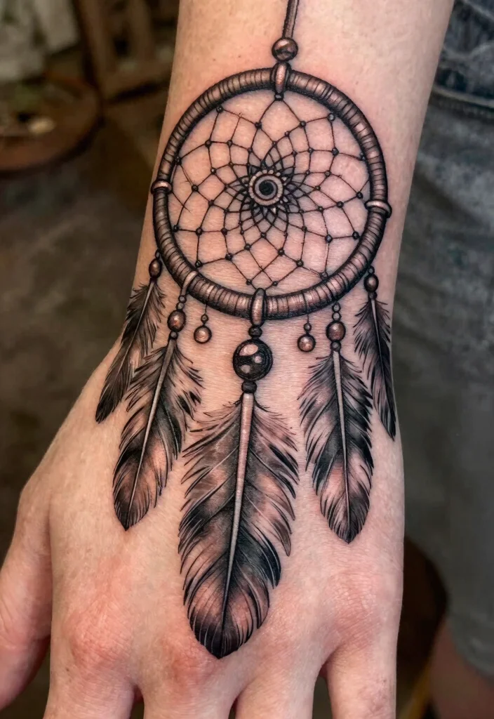 Personalize the dreamcatcher by using colors that resonate with you or incorporating small symbols that hold special meaning. Ideal placements include the back of the hand or wrist for maximum visibility and impact.