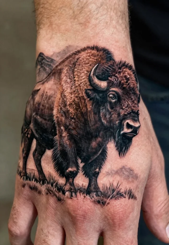 Consider adding elements like mountains or prairie grasses to expand the narrative. This tattoo looks fantastic on the upper hand or wrist, where its bold lines and intricate details can truly shine.