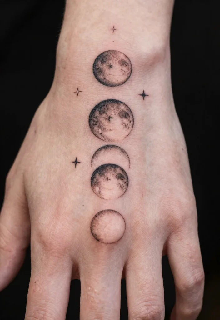 If you’re captivated by the mysteries of the universe, a celestial moon phases tattoo could be a perfect fit. This enchanting design symbolizes transformation and the cycles of life, appealing to those who cherish personal growth. Picture a series of delicate moons inked along your fingers or wrist, each phase intricately detailed to reflect the beauty of change.