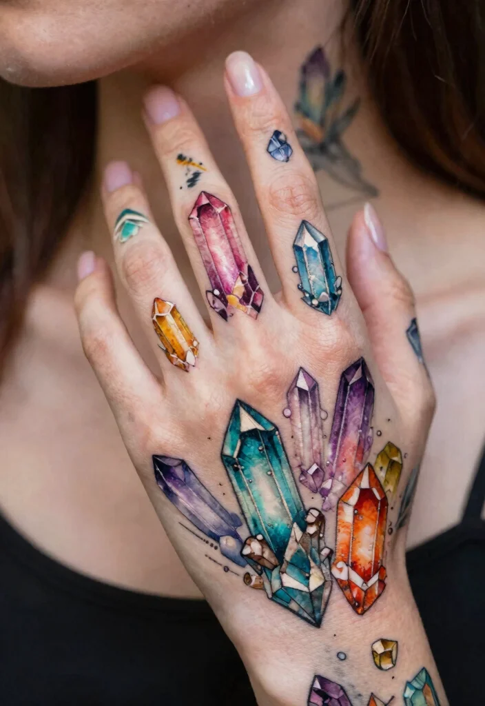 Crystals are celebrated for their energetic properties and magical attributes. A tattoo featuring your favorite crystals can symbolize personal growth, healing, and protection. Imagine a design that incorporates various crystalline shapes inked along your fingers, wrist, or the back of your hand. Each crystal can represent different energies—amethyst for tranquility, rose quartz for love, or citrine for success—making this tattoo deeply personal.