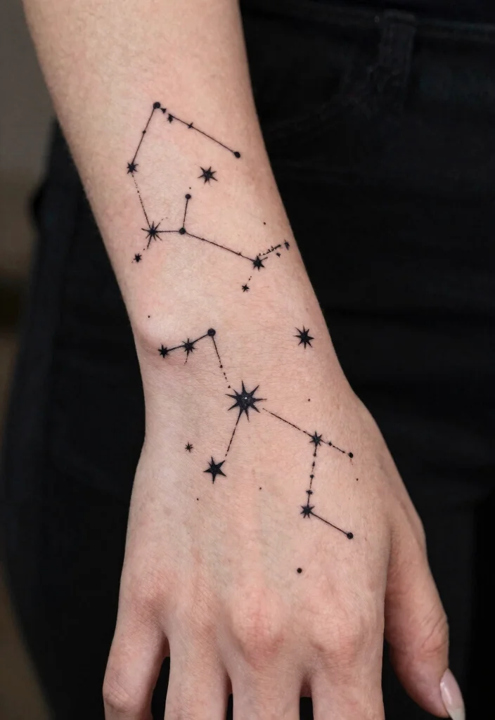 Tattooing constellations can represent guidance, dreams, and connections to the universe. This design serves as both a beautiful piece of art and a personal reminder of your celestial ties. Imagine a series of constellations inked along your forearm or the back of your hand, connected by delicate lines.