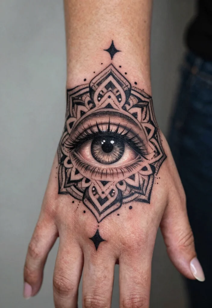 To amplify the mystical vibe, think about incorporating mandalas or sacred geometry around the eye. This combination of bold lines and delicate detailing creates a mesmerizing focal point that draws attention. Ensure you choose a placement that allows the eye to shine while being easy to cover when necessary.